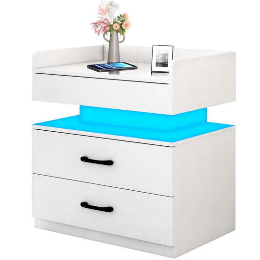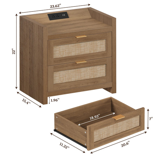 2-Drawer Farmhouse Nightstand with Charging Station Set of 2