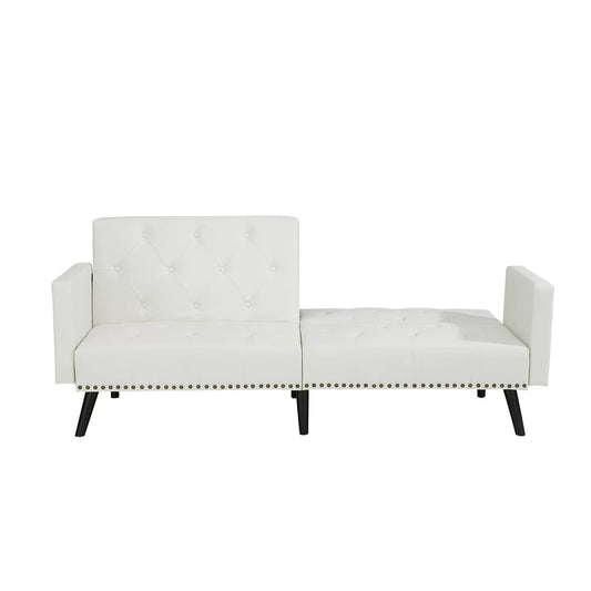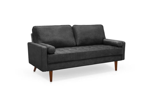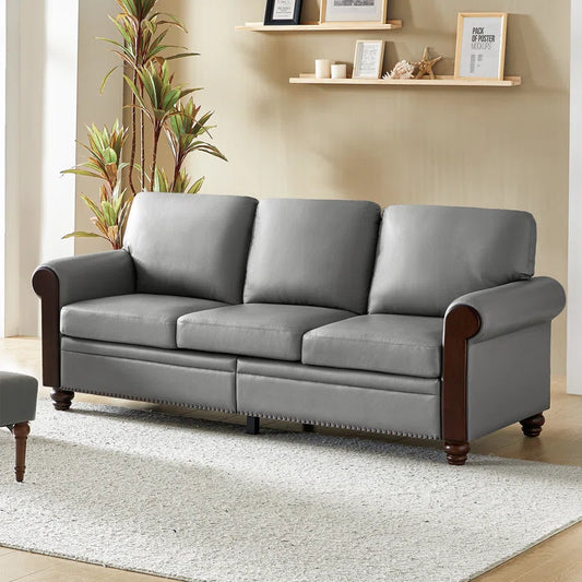 Vegan Leather Sofa with Wooden Decoration Rolled Arms