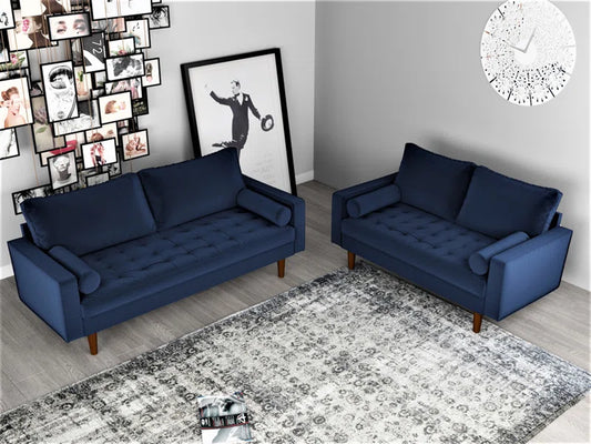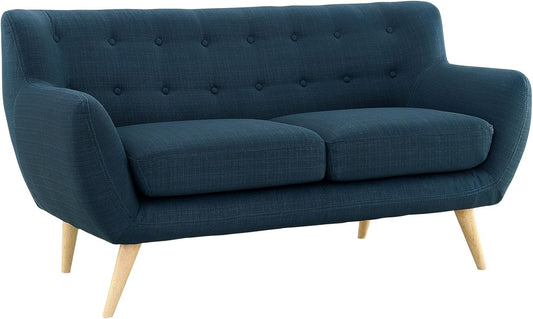 Remark Mid-Century Modern Loveseat with Upholstered Fabric in Azure